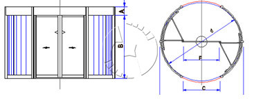 Inner diameter | Door center full width | Entrance width | Middle doors open width | Canopy height | Door height | (d)MM | (D)MM | (C)MM | (F)MM | (A)MM | (B)MM | 3200 | 3366 | 1420 | 1400 | 300-400 | 2200 | 3400 | 3566 | 1520 | 1500 | 2200 | 3600 | 3766 | 1620 | 1600 | 2400 | 3800 | 3966 | 1720 | 1700 | 2400 | 4000 | 4166 | 1820 | 1800 | 2400 | 4200 | 4366 | 1920 | 1900 | 2400 | 4400 | 4566 | 2020 | 2000 | 2400 | 4600 | 4766 | 2120 | 2100 | |